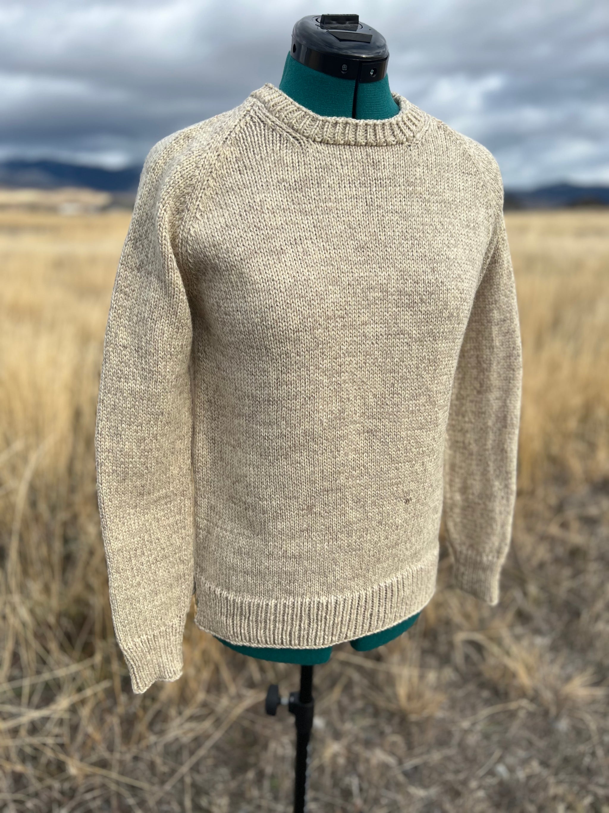 Each sweater is crafted with care in the Ruby Valley of Montana, highlighting the natural beauty of Montana's colors and durability of high-quality wool. The handframed technique, using an antique knitting machine, ensures a fully-fashioned, elegant finish, while the soft, breathable fibers provide warmth without bulk—perfect for crisp mornings and cool evenings.